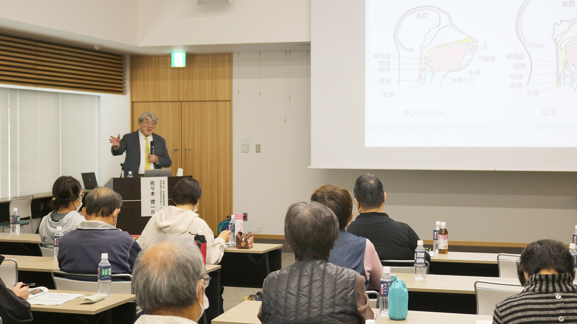 最終回となる第5回講座では、宮城大学 佐々木学長が「喰う・味わう・呵う・喋る― 口福な生活―」と題して講話を行い、歯科の歴史や口と歯の健康にまつわる話題を通して、食べることの意味や口腔の役割について多角的な視点から語り、豊かな生活のあり方について理解を深める機会となりました。