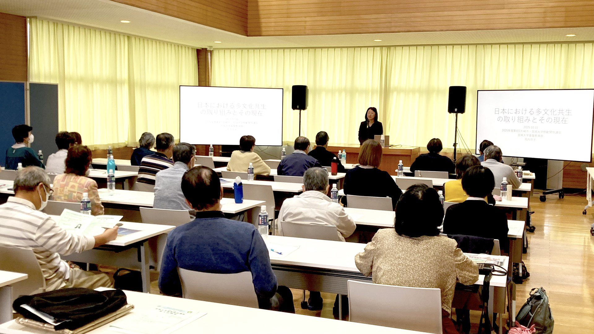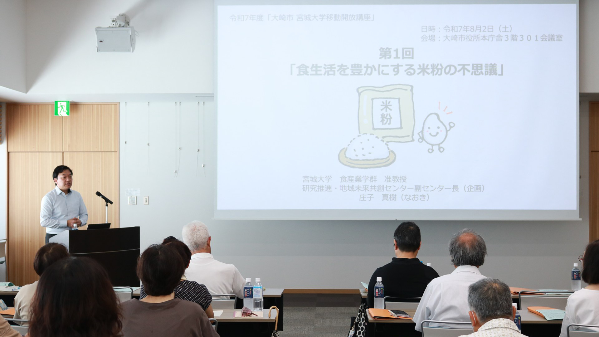 宮城大学移動開放講座は、宮城大学と大崎市との連携協力事業の一環として平成19年度にスタートした事業です。平成24年度からは大崎定住自立圏共生ビジョンの協定事業として、大崎市、色麻町、加美町、涌谷町、美里町の住民の方も対象に実施しています。今年度は、看護学群・事業構想学群・食産業学群・基盤教育群の教員と、最終回は佐々木啓一学長が登壇し、令和7年11月8日(土)に最終回および閉講式を大崎市役所にて執り行い、全5回の講座に延べ127名の方が受講しましたのでお知らせします。