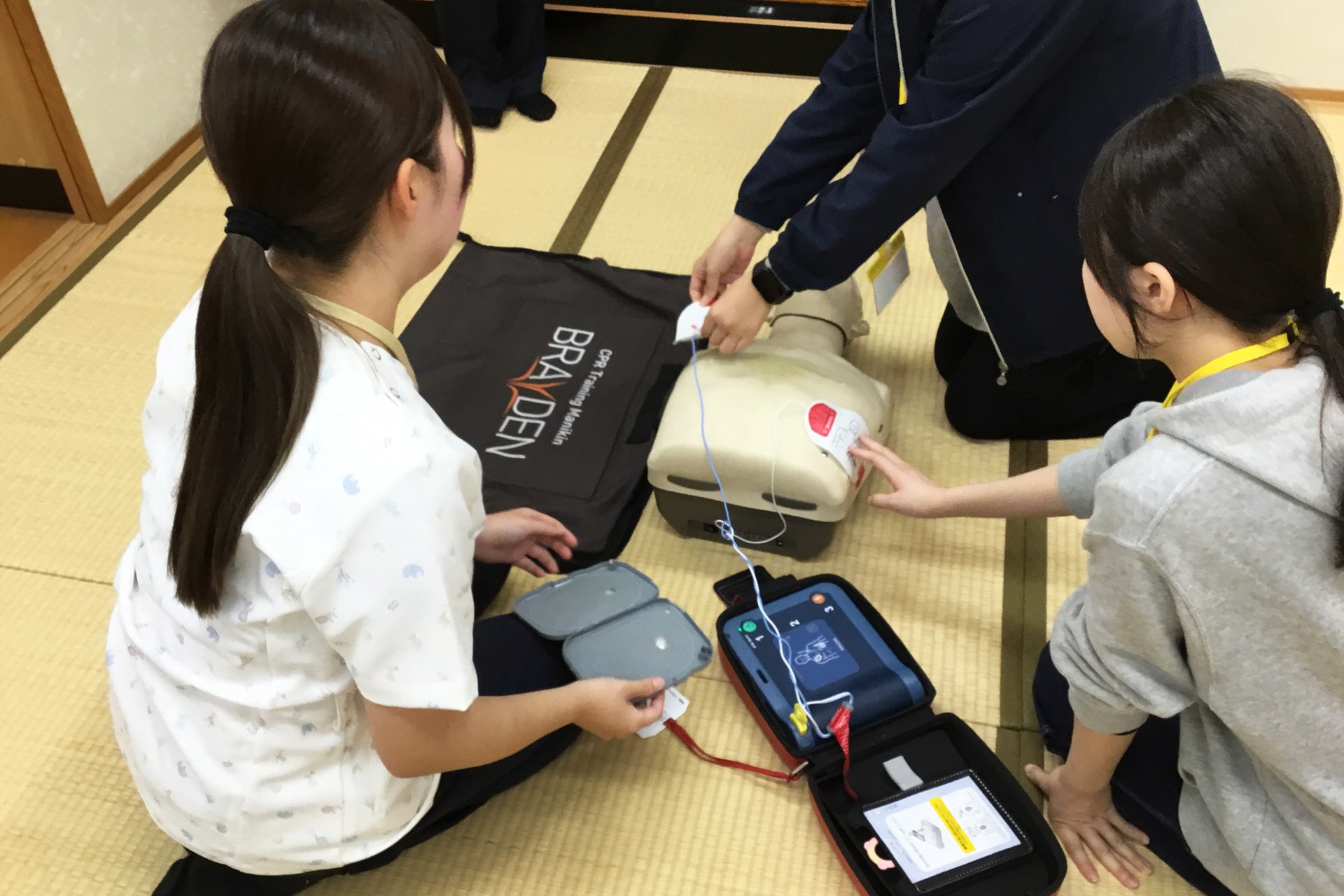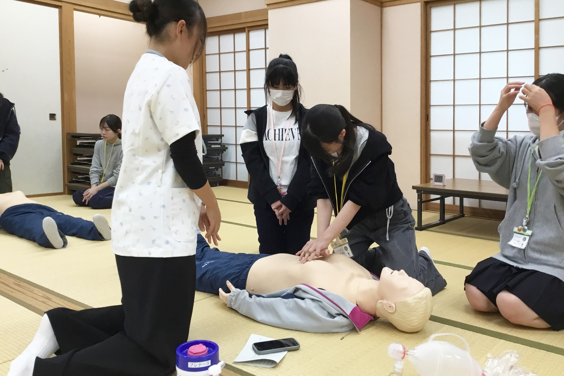心肺蘇生の体験を通して、スクール生からは「周囲の人に助けを呼び、役割を分担して対応することが大切だと学んだ。」「胸骨圧迫、AED、人工呼吸の知識を学び、人を助ける仕事に就きたいと思いました。」「冷静に患者さんへ応急処置を行う方法を学ぶことができた。いつか実践したい。」という声が寄せられました。今回のプログラムは、1年生のアンバサダーが中心となり企画いたしました。スクール生へ一次救命処置について分かりやすく説明するために、プレゼンテーション資料を準備し、実技の練習を行いました。当日は他学年のアンバサダーと力を合わせて協働しました。