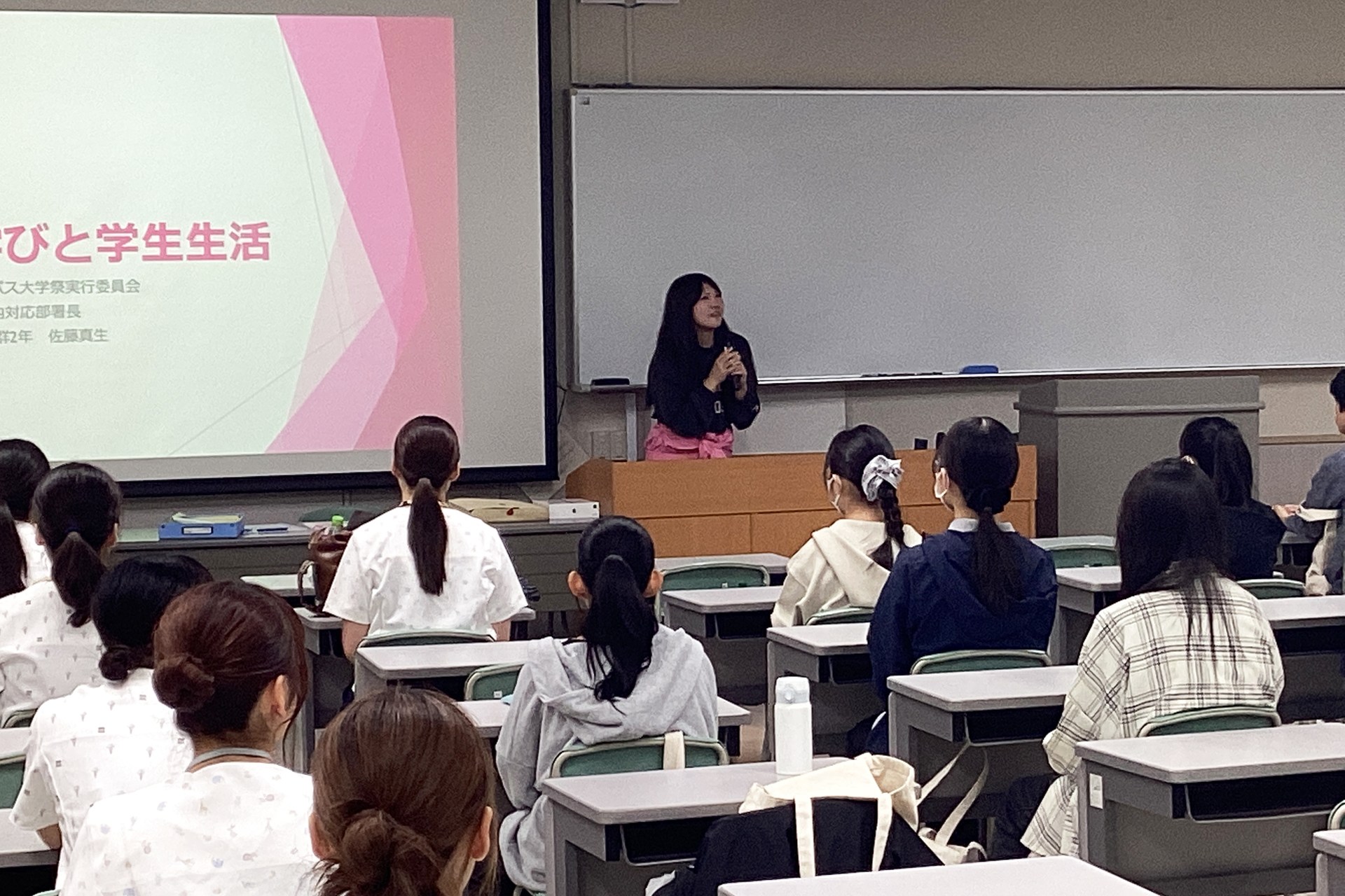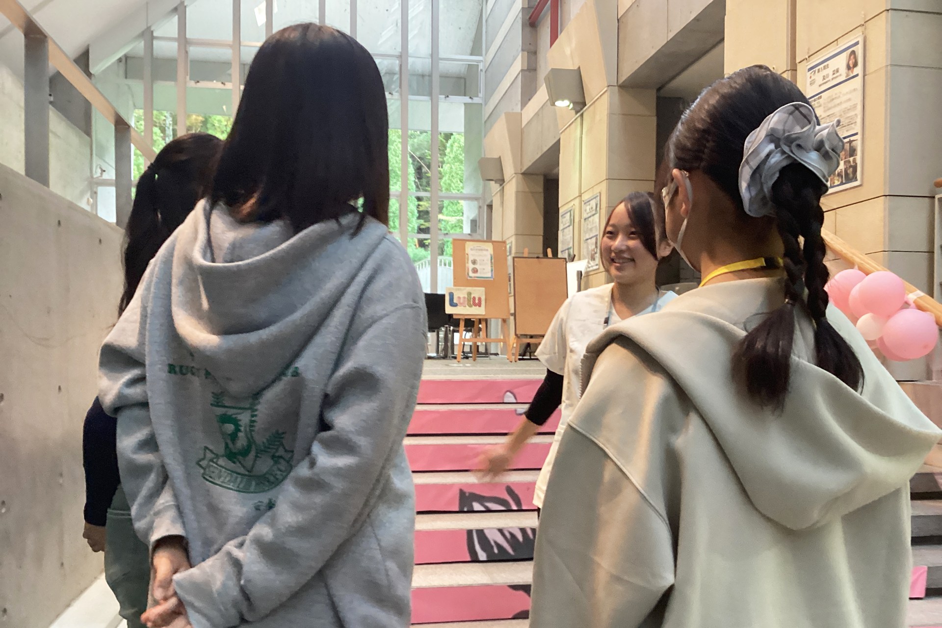 今回のプログラムでは、大学祭開催中ということもあり、大学祭実行委員の学生から課外活動や大学での学びに関する話を聞く機会を設け、スクール生は具体的な大学生活を教えてもらいました。大学受験に向けての心構えや準備に関する質問に対し、先輩から温かく的確なアドバイスを受け、スクール生からは「宮城大学の先輩方に憧れを持つようになれました!」という声が寄せられました。その後の大学祭見学では、他学群の学生との交流の様子を実際に見ることで、大学在学中の様々な学生との交流も楽しみの1つとなりました。
