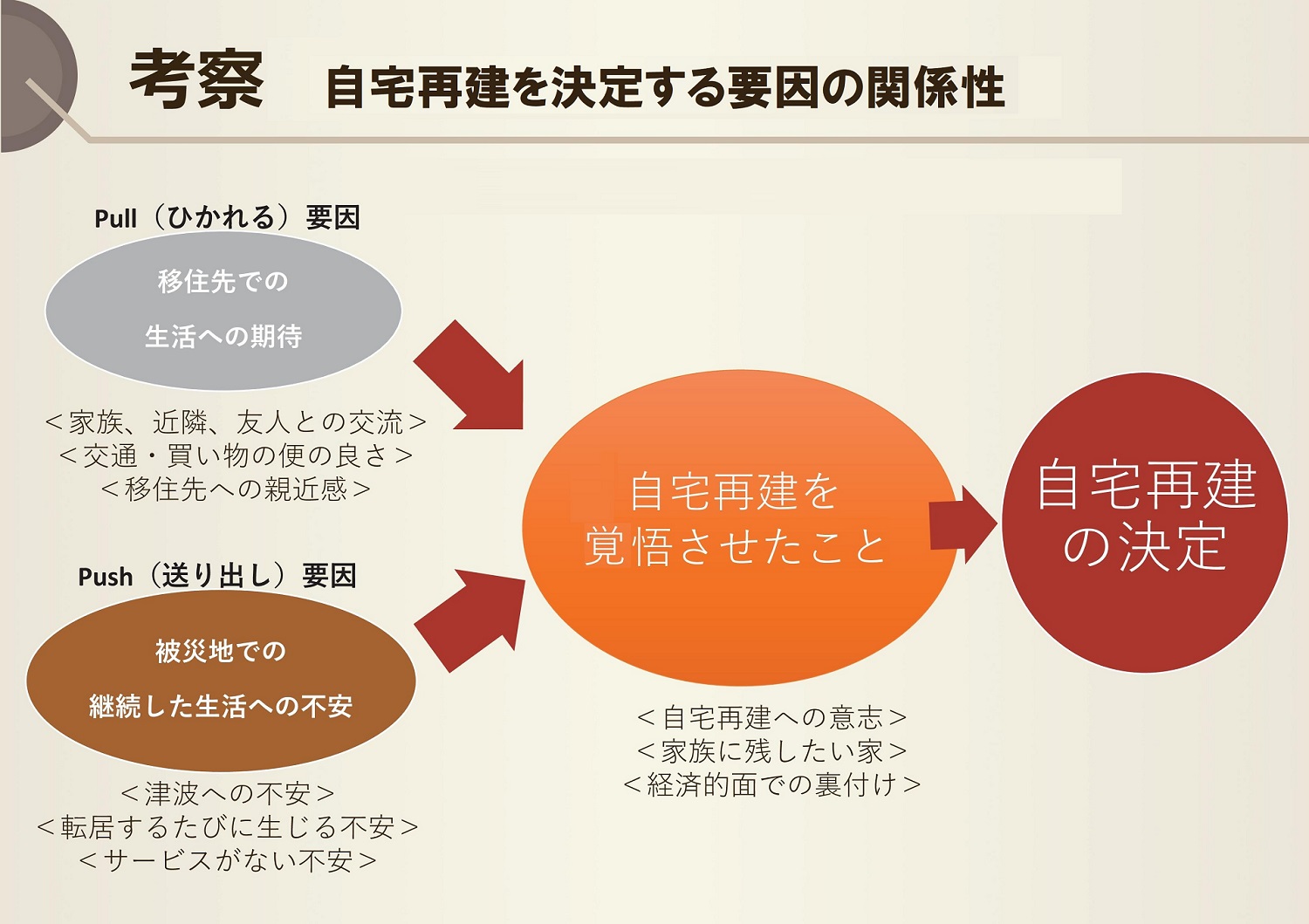 私は研究において、震災により住み慣れた土地を離れた高齢者が新たな地域でソーシャルキャピタルを再構築したプロセスを整理し、生活適応や精神的健康に寄与した要因を明らかにすることで、今後起こり得る災害時の支援にも役立てたいと考えています。