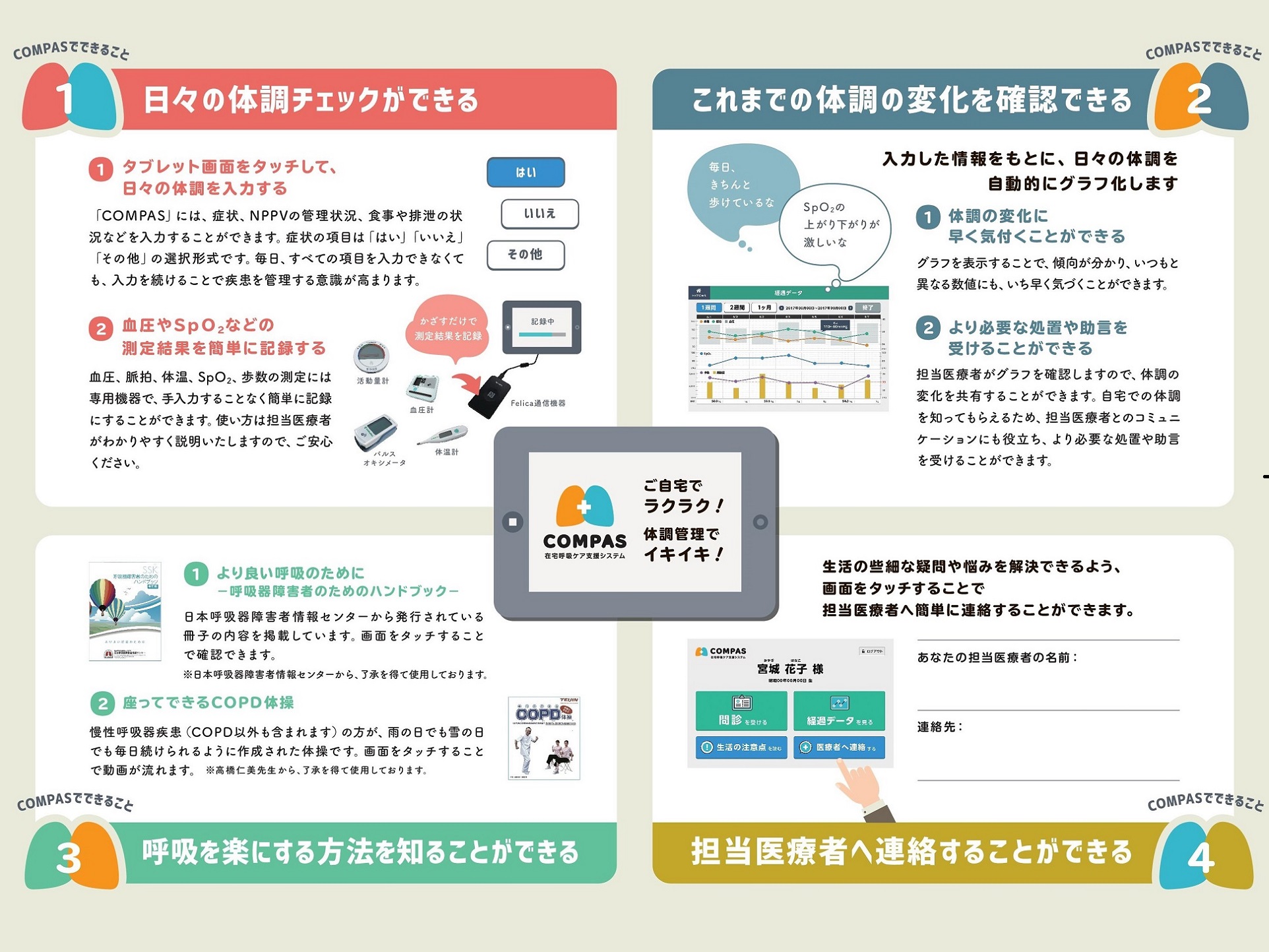 - 呼吸器疾患の方のQOL向上、セルフマネジメント支援方法の構築について、協力いたします。