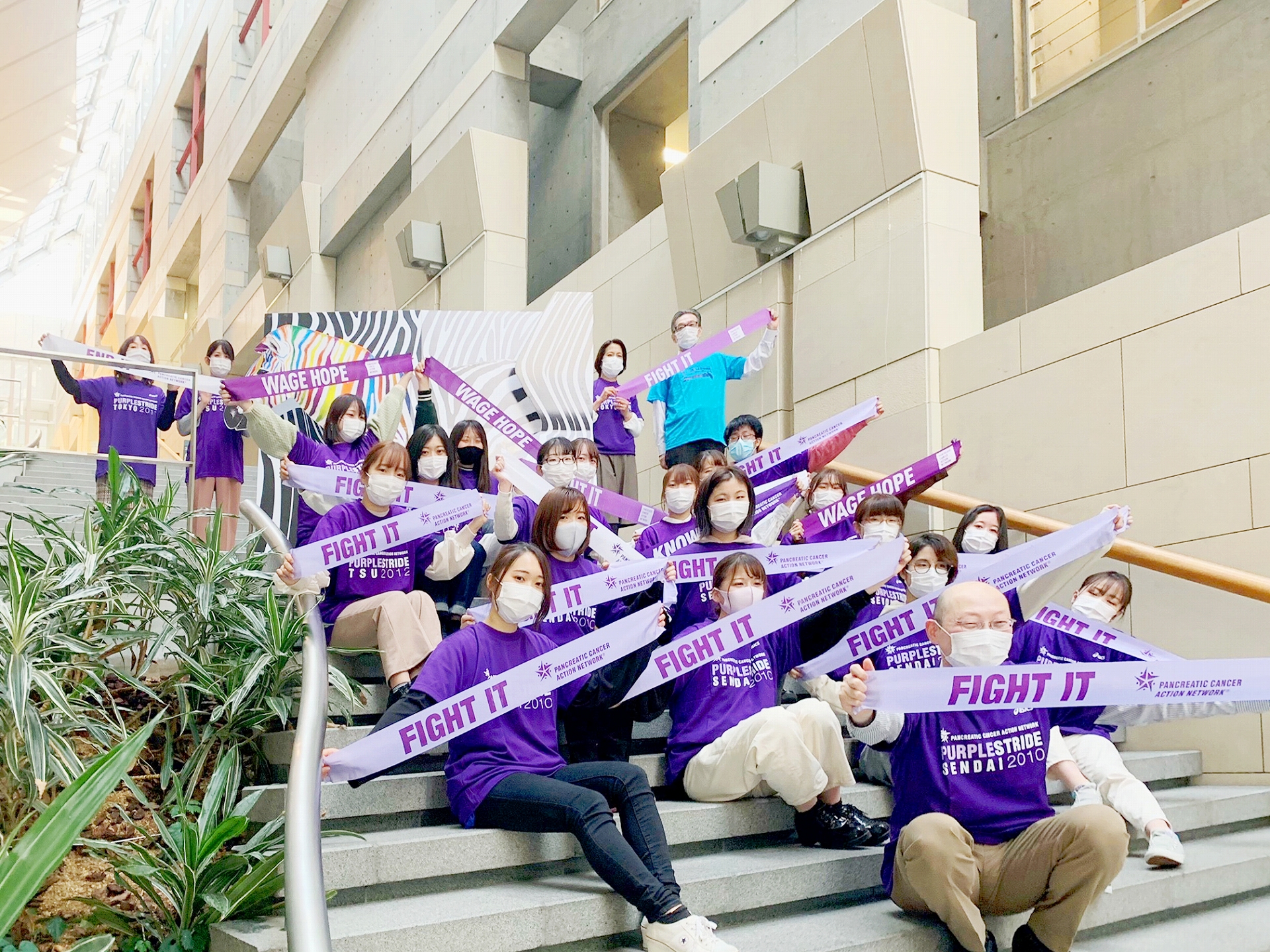 膵臓は、胃の後ろにある、左右に細長い臓器です。膵臓がんは発生しても症状が出にくく、早期の発見は簡単ではありません。パンキャンジャパンは、膵臓がんの早期診断・治療に関する研究促進のための支援など幅広く活動する団体で、宮城支部の方々と一緒に活動しています。