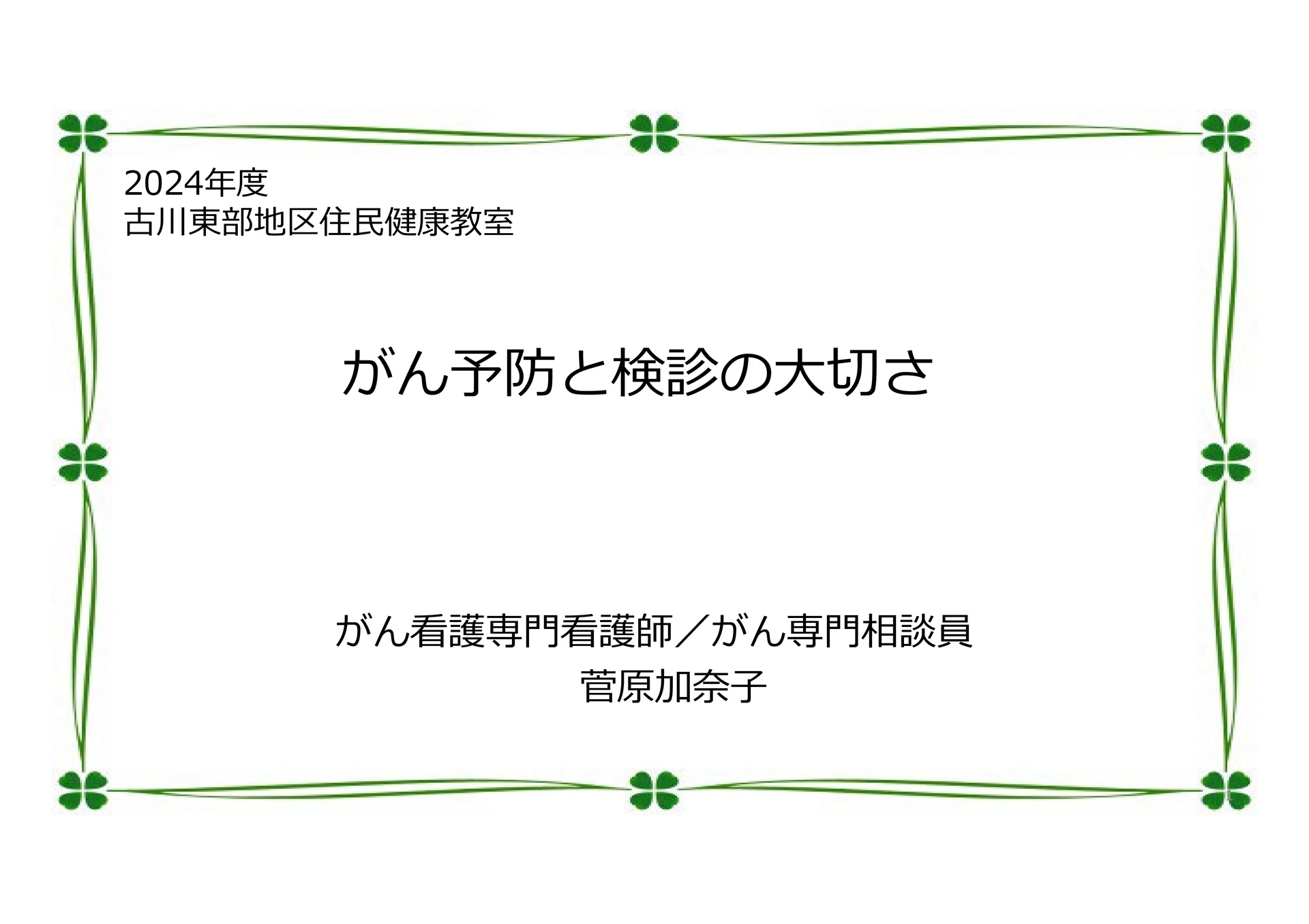 - 学校や地域住民向けのがん教育、がん検診に関する研修会等について支援することができます。